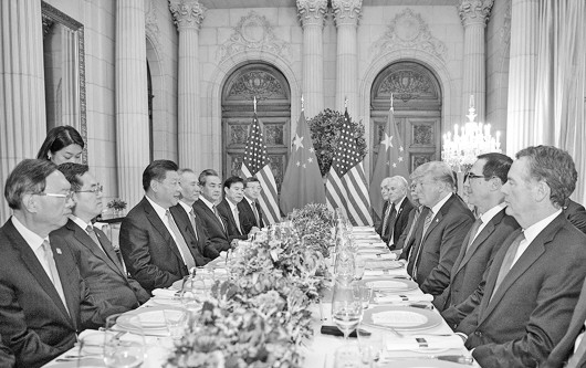 本报讯 当地时间12月1日晚,国家主席习近平应邀同美国总统特朗普在阿根廷布宜诺斯艾利斯共进晚餐并举行会晤。两国元首在坦诚、友好的气氛中,就中美关系和共同关心的国际问题深入交换意见,达成重要共识。双方同意,在互惠互利基础上拓展合作,在相互尊重基础上管控分歧,共同推进以协调、合作、稳定为基调的中美关系。