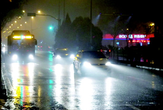 2日晚间,省城济南下起小雨。受较强冷空气影响,省内多地持续多日的雾霾天3日有望结束。 本报记者 周青先 摄