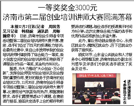 济南市第二届创业培训讲师大赛圆满落幕
