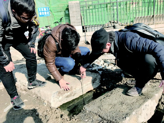 经过勘察,朱磊表示,泉水暗渠的发现以及17日下午刚刚挖出的老石板路面,都为此处的改造提供了很好的设计条件。他们现在需要考虑芙蓉街、老茶巷以及文庙路面的标高,根据现有标高进行测算,对泉渠、老石板路进行一体化设计。