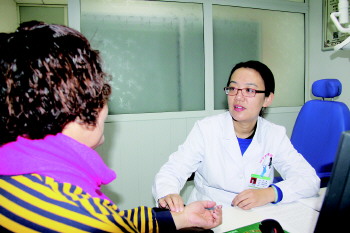 孔娟为患者检查。
