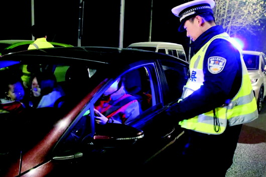 12月24日晚,交警直属四大队开展酒驾醉驾统一行动。 本报通讯员 于小晴 摄