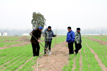 村民正在栽种冬桃树。