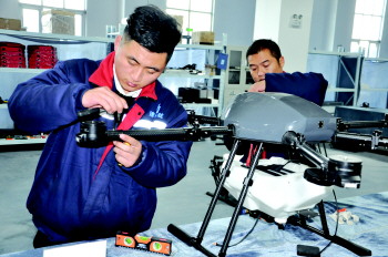 ◥在山东清科智能科技有限公司,工作人员正在组装无人机。 本报记者 李德领 摄