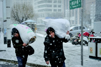 雪中奔波 来源:齐鲁晚报 2018年12月28日 雪中奔波 27日上午,威海汽车站公交站点附近,几名农民工背着沉重的行囊在雪中赶路。年终岁末,外出务工的他们开始返乡。受降雪和低温影响,今天白天到30日威海将出现对交通影响较大的积雪和道路结冰。本报记者 王震 摄影报道 本稿件所含文字、图片和音视频资料,版权均属齐鲁晚报所有,任何媒体、网站或个人未经授权不得转载,违者将依法追究责任。