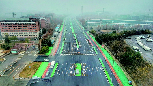 和平路东延打通后,济南中央商务区交通路网得到优化。 本报记者 刘飞跃 摄