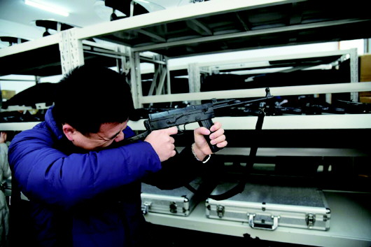 市民体验枪械(训练用警用器械模型)。
