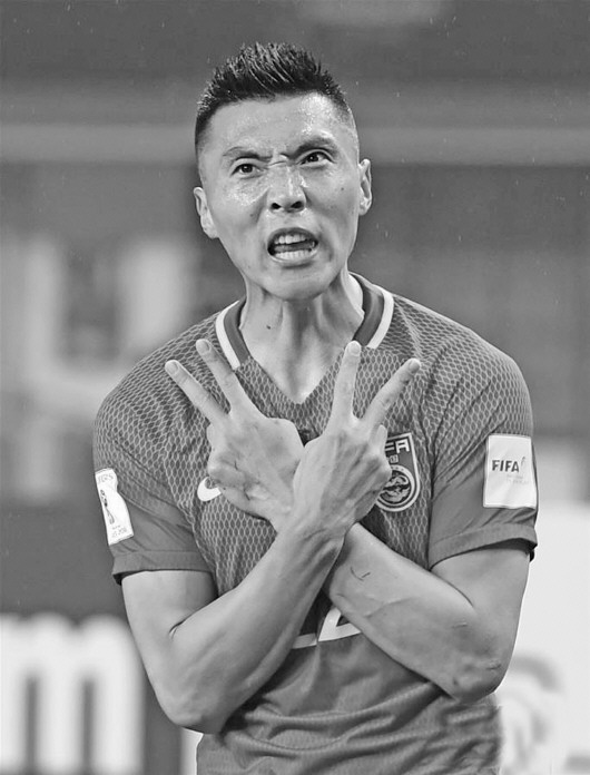 2017年3月,中国队1:0韩国。这是国足最近一次战胜这个老对手。图为进球功臣于大宝。(资料片) 新华社发