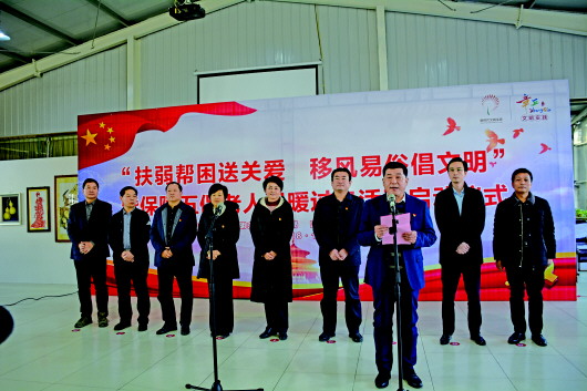 开展“扶弱帮困送关爱,移风易俗倡文明”活动,区领导李宝燕(左五)、董鹏(右四)参加。
