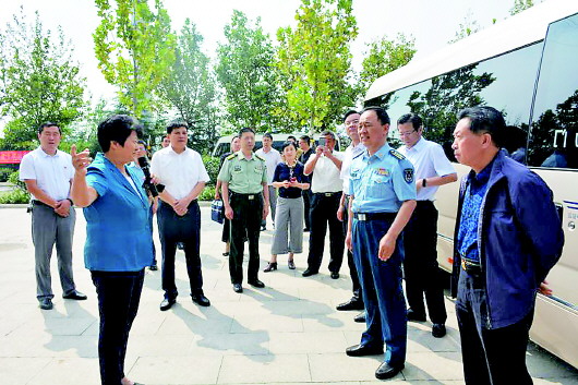 省双拥模范城考评组到章丘指导工作,区委副书记、区长韩伟(左三)陪同。