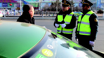 2月17日起,长途方向日均运送旅客人数达到3000多人。为应对返程高峰,20辆加班车已充实到高峰一线,进行客流疏导。区交通运输局督促斑马快跑、呼我出行等五家网约车平台公司对所属的60多台网约车开展自查自检工作。重点检查车辆营运证件、行驶证是否齐全有效;从业人员的驾驶证、巡游车及网约车驾驶证是否有效;灭火器、三角木、警示牌、防滑链以及车载卫星定位终端是否按规定配备并正常使用等。图为执法人员对营运车辆相关证件进行检查。