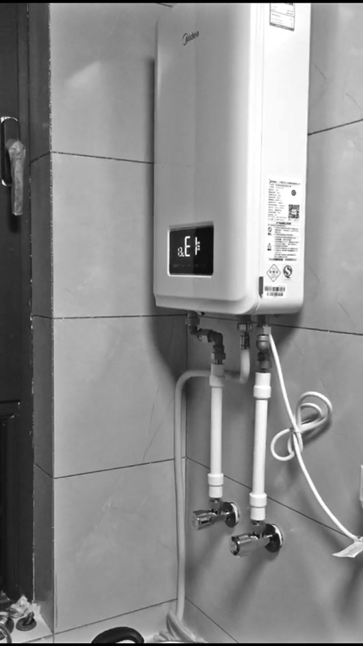 ▲处在E1报警中的燃气热水器。 受访者供图