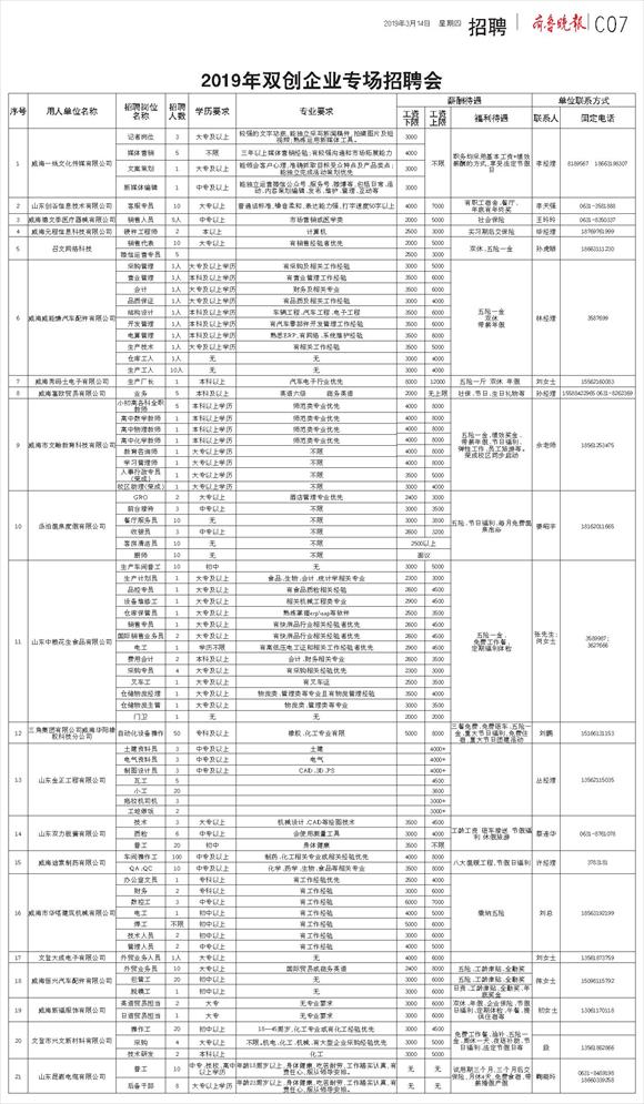 第WW07版:文登时讯·招聘
