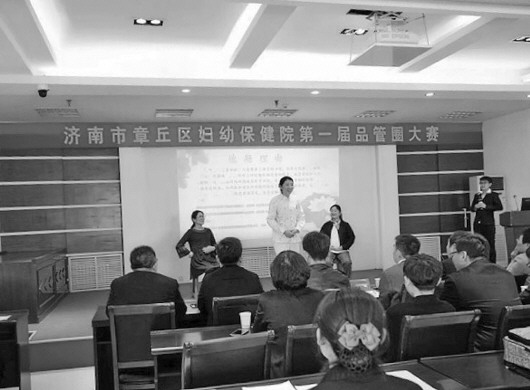 章丘区妇幼保健院第一届品管圈大赛比赛现场。