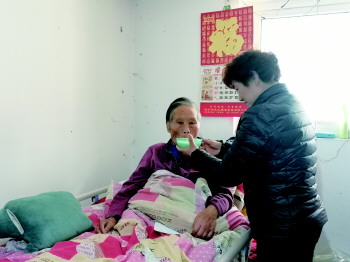许修荣照顾卧病在床的婆婆。