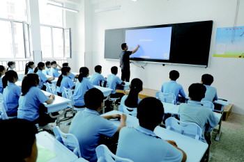 老师用智能黑板授课。