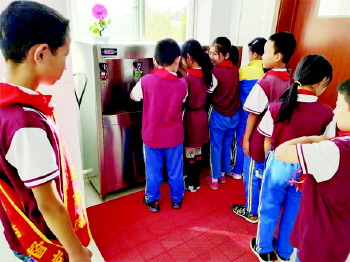 教学楼内安装饮水台 为更好地服务全校师生员工,新学期,沂源县鲁村镇中心小学投入一万五千余元在教学楼内安装了3台饮水台,该饮水台自带三级净化滤芯,能够同时供应开水、温水。 (房秀伟 齐永水)