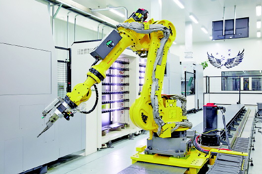 歌尔自主研发的完全自动化的机械臂,应用于工件检测。