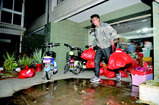 慢慢地,张鑫把盒子送到了周边两三所高校的宿舍里。最多的时候,张鑫每天的订单高达400个,从傍晚一直忙到凌晨。他为此雇了11个配送员,和他一起拣货、送货。