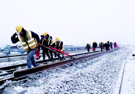 2019年春节前夕,他们成立了铺轨、焊轨、无砟道岔三个青年突击队,掀起冬季铺轨大干热潮,广大建设者发扬铁道兵精神和沂蒙精神,放弃与家人春节团聚的机会在风雪严寒中坚守岗位,在天气最恶劣的12月份仍完成了150公里的铺轨任务,为各项节点目标的顺利实现赢得了时间。