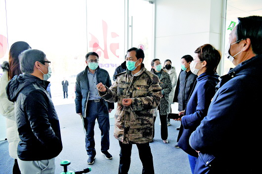 市中区委书记韩永军在市中区文创园区服务中心调研复工复产。 市中区供图