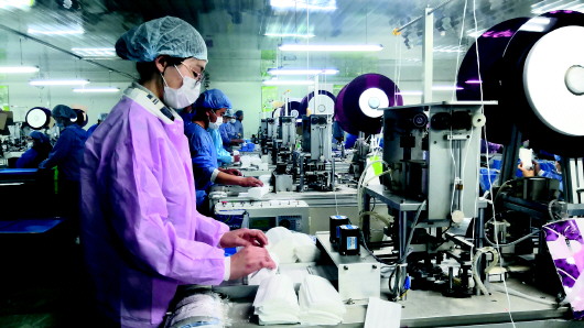 “刚开始,我们以为只是负责包装环节,没想到一开始就要到生产线。”漱玉平民济南零售连锁市中分部总经理解玉港说,他们看到生产线上的机器后就蒙了,因为他们从来没有生产口罩的经验,所有的东西都要从头开始学起。不过,他们迅速分成了几个小组,很快熟练掌握了口罩生产流程。