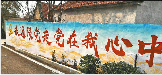 粉刷文化墙,村庄换新貌
