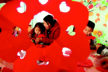 沂源县悦庄镇中心幼儿园开展“巧手剪窗花,同乐迎新年”活动。