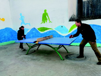 沂源县三岔中心学校举行教职工乒乓球比赛活动。