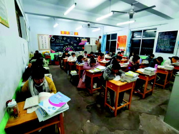 沂源县三岔中心学校全体任课教师自发为学生辅导功课。