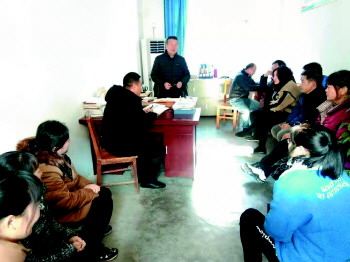 沂源县三岔中心学校召开初四年级会。