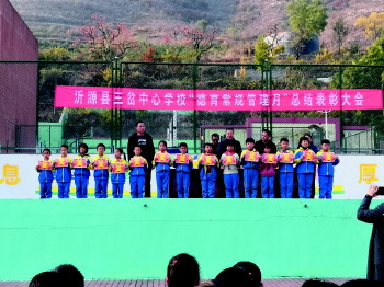 沂源县三岔中心学校举行“德育常规管理月”总结表彰大会。