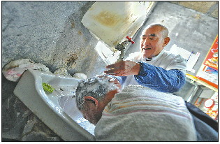 凭借着刮脸这门老手艺,任连道的小店吸引了不少忠实老年粉丝。