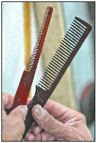 ◤20多年未换的胶木梳子已经磨掉了大半,这是老任最顺手的工具之一。