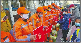 活动主办方准备的花生油、大米、挂历等爱心大礼包送到了保洁员代表手中。“感谢你们的付出,是你们的劳动,让这个城市变得如此美丽。”志愿者们向保洁员真诚地表示感谢。