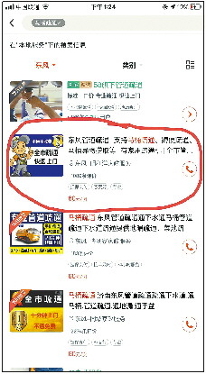 李女士介绍,8日上午8点多,她家马桶堵塞了。她在58同城搜寻了马桶疏通的公司,找到了排名靠前的明利洋家政服务。网页显示疏通价格是60元/洞。打通客服电话后,客服留下了她的电话号码。两分钟后,一名维修师傅联系到她,称很快会上门。