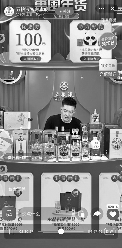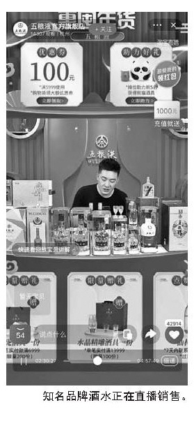 知名品牌酒水正在直播销售。