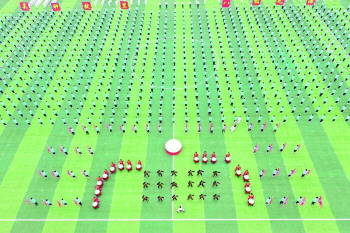 本报德州6月24日讯(记者 张磊 通讯员 王凡存 王洁令 马俊良) 6月24日,庆云县吴钟八极拳大型全民健身活动启动,来自全县74所中小学校师生,以演练八极拳的方式,庆祝中国共产党建党100周年。