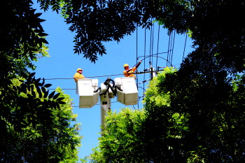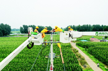 8月26日,禹城供电公司工作人员战高温保供电,对10千伏开发区线进行线路省级改造,新建线路1.7千米,新架设电杆60基。 (韩景茹)
