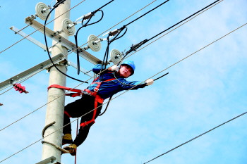8月24日,禹城公司员工为10千伏水厂线35号杆带电完成断、接引流线工作,保障42家企事业单位和500余户居民正常用电。 (韩景茹)