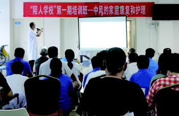“照顾病患有很多讲究,而我们家属又不专业,我爱人刚转来康复医学科时,我连如何抱他上轮椅都做不到位,很多时候真是有心无力。”宋女士坦言,当得知康复医学科成立了“陪人学校”培训班,她赶紧报了名,想多学习些照护技能。