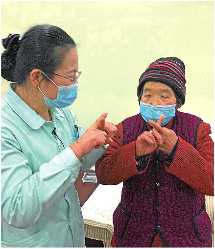 护理人员告诉老人还有十天就能回家了,老人很高兴。 齐鲁晚报·齐鲁壹点记者 钟建军 摄