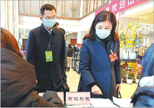 1月21日起,山东进入两会时间。出席省十三届人大七次会议和省政协十二届五次会议的人大代表、政协委员,陆续到各个住地报到。在接下来几天里,他们将认真履职尽责、积极建言献策。今年两会,所有与会人员全部纳入健康管理。报到大厅入口处除摆有智能测温设备外,还配有“一人一证”自动检录设备。在工作人员指引下,签到、核酸检测、核对信息、领取会议资料……代表委员们有条不紊地进入住地。图为在颐正大厦住地,人大代表正在办理报到手续。 齐鲁晚报·齐鲁壹点记者 杨璐 摄