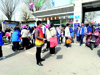 新时代文明实践志愿队的志愿者们,利用午休时间,来到莒县一中帮助老师交警疏导交通,保障每一个孩子平安上学放学。志愿者们所到之处,处处激荡着文明之风,一群“志愿红”,为居民群众的生活带来满满幸福感。