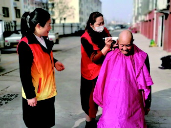 岳家村社区 “红马甲”学雷锋 义诊义剪志愿活动