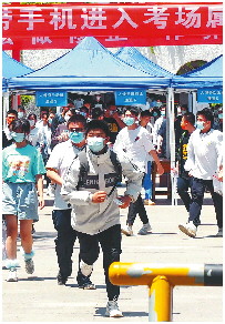 上图:7日中午,山师附中考点,语文考试结束后考生乐滋滋出场。