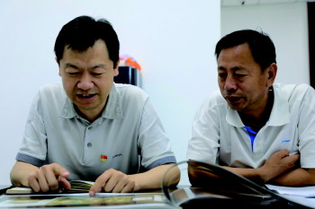 韩开与工作组队员交流工作。