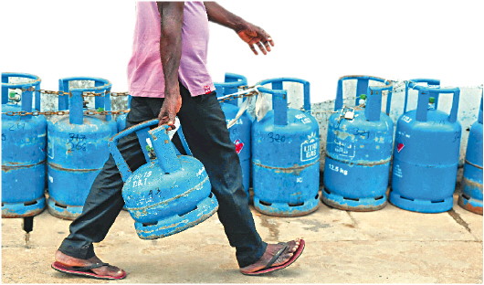 6月10日,在斯里兰卡科伦坡,一名男子走过放置在路边用来排队购买液化气的罐子。 新华/法新