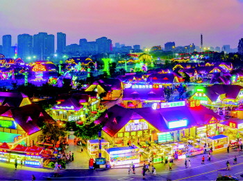 金沙滩啤酒城按照“主线突出、多点布局、全面呈现”的思路,打造时尚浪漫的游乐打卡地。
