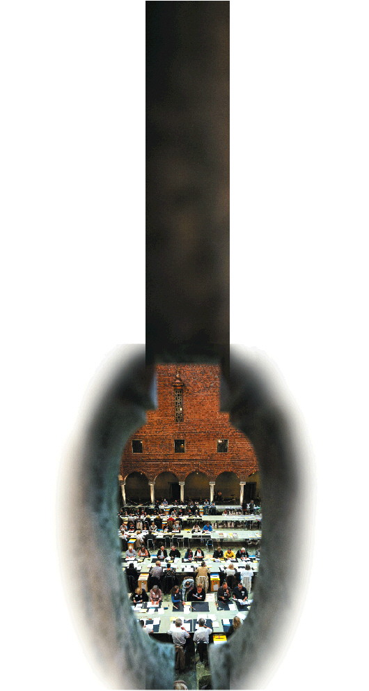 9月14日,在瑞典斯德哥尔摩市政厅,工作人员进行最后的议会选举计票工作。新华/法新